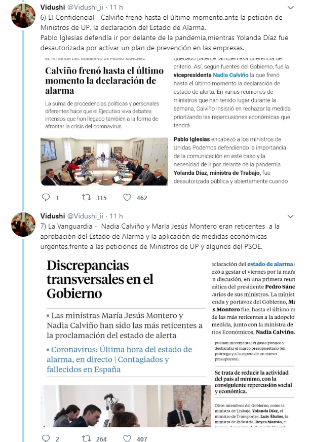 El hilo elaborado con pantallazos de medios de comunicación n de diferentes ideologías, corrobora cómo Unidas Podemos quiso decretar antes el estado de alarma.