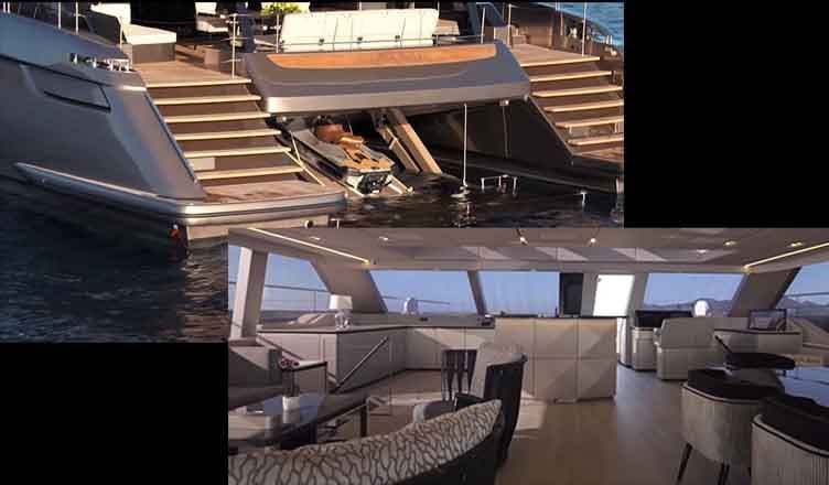 Se trata de una embarcación de lujo con garaje para lancha auxiliar, motos de agua y otros vehículos acuáticos que cuenta con una eslora de 28 metros y 12 de manga .