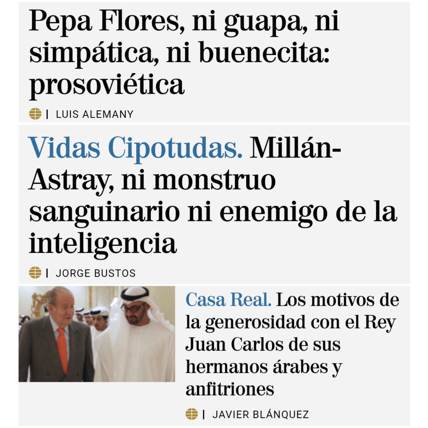 Acto seguido consta otro artículo firmado por Jorge Bustos dedicado a José Millán-Astray, militar franquista y fundador de la Legión: «ni monstruo sanguinario ni enemigo de la inteligencia«.
