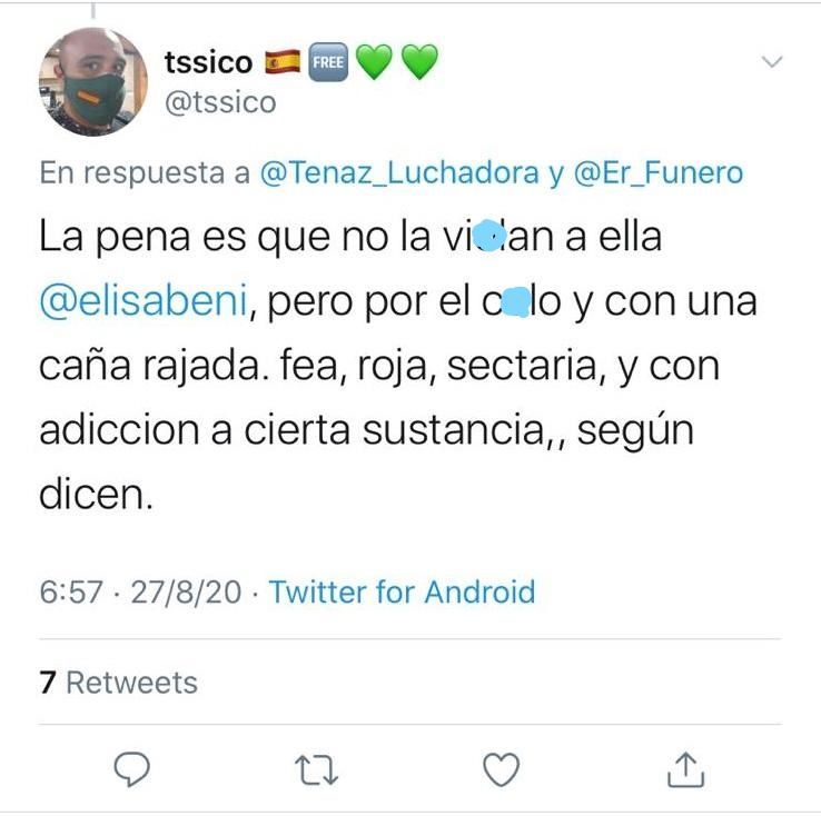 La periodista y tertuliana de televisión Elisa Beni, ha denunciado el último acoso sufrido por parte de la extrema derecha a través de redes.