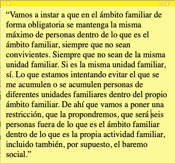 Pero el momento «peculiar» dela comparecencia ha llegado cuando ha intentado explicar las restricciones de grupos de personas en el ámbito familiar.