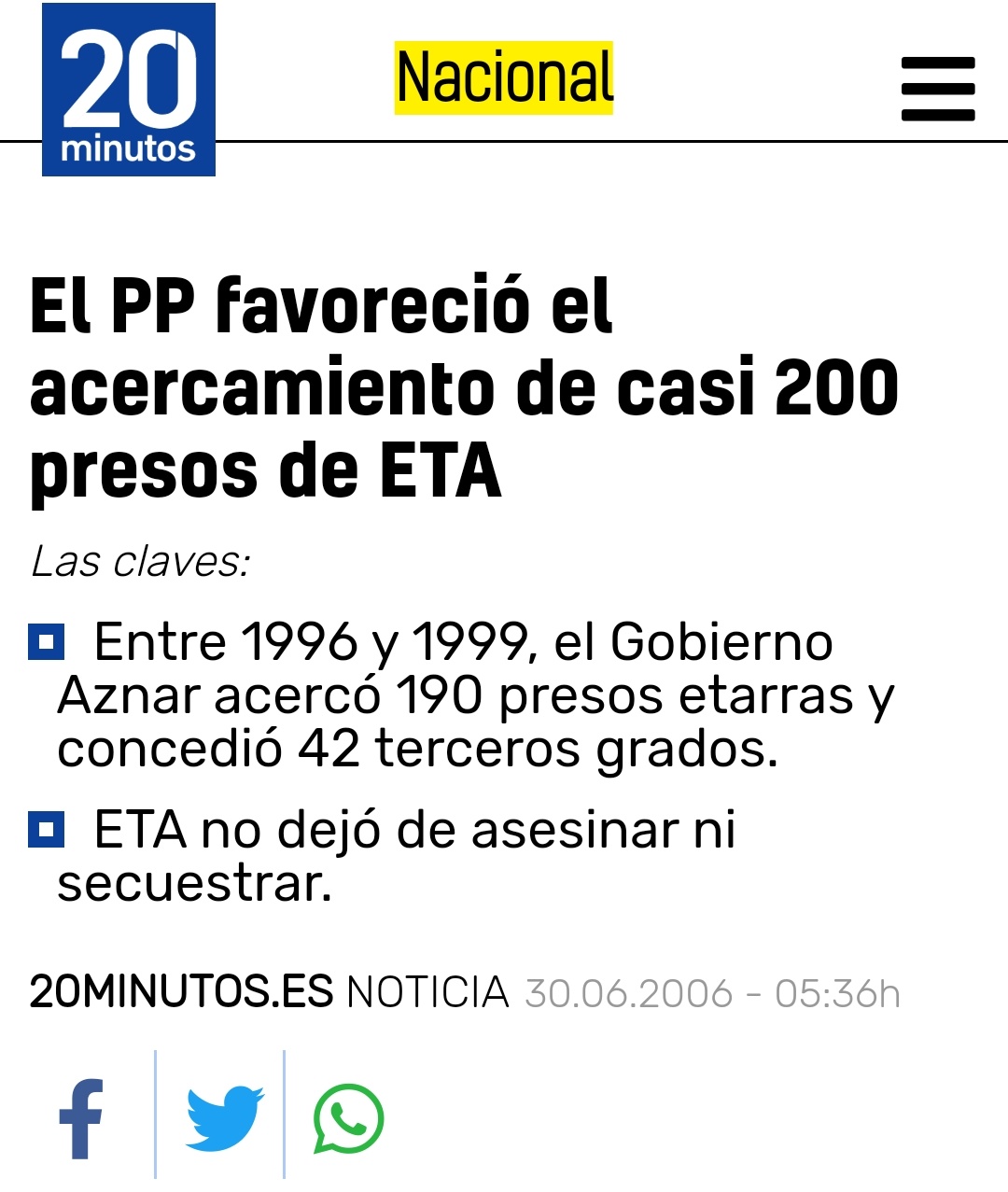 En 1996 Aznar acercó a cárceles vascas a 32 presos de ETA, 13 de ellos con delitos de sangre, mientras Ortega Lara estaba secuestrado.