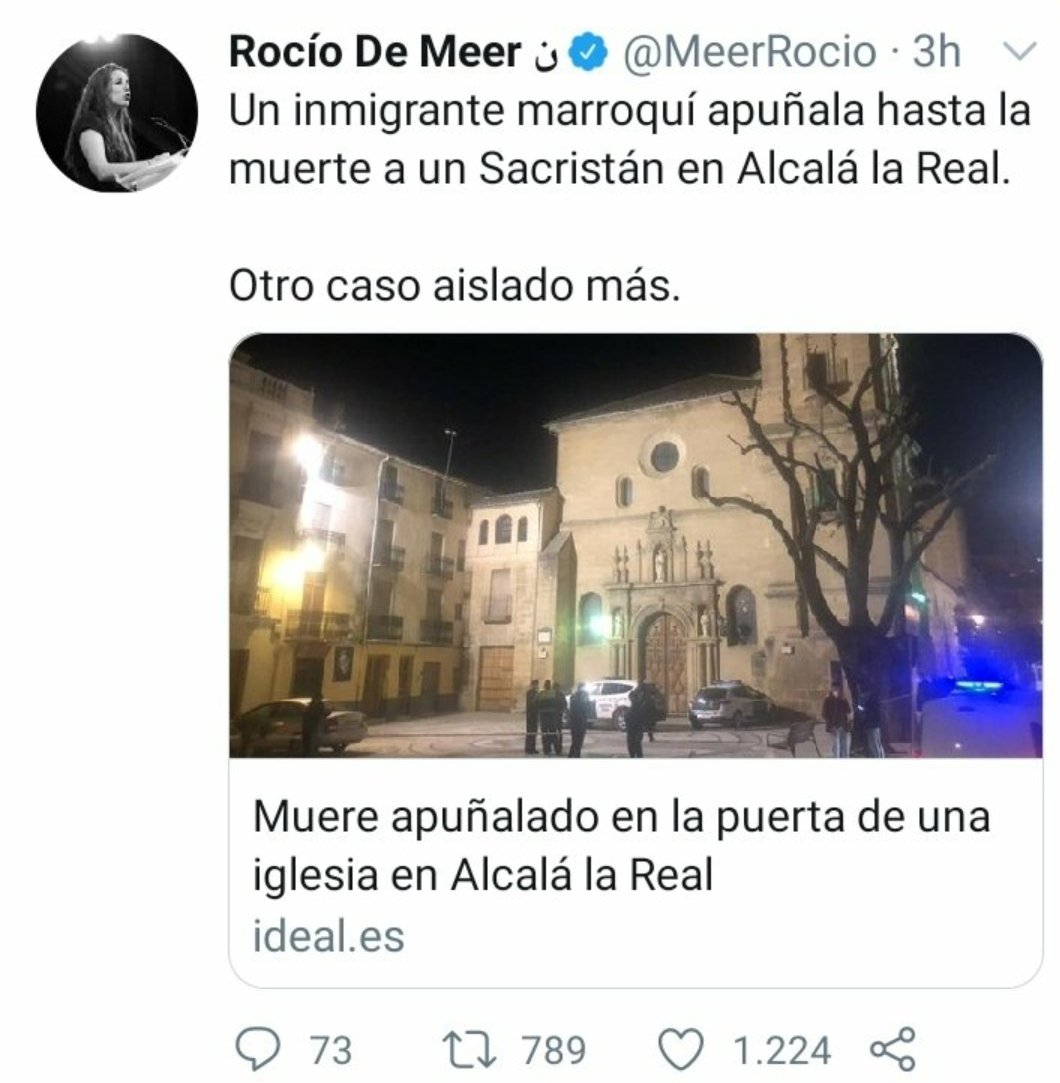 La formación de extrema derecha ha vuelto a sacar a relucir su racismo e islamofobia a través de la cuenta oficial de su partido, y de algunos de sus diputados como Rocío de Meer y Hermann Tertsch.