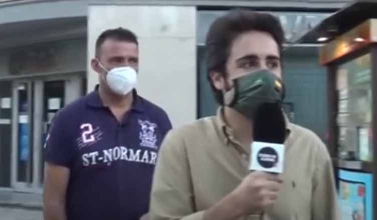 El vecino acusa al policía y al reportero de ser de VOX, «un partido racista», después de que se le preguntara por la supuesta «narc0okupación y la inseguridad del barrio».