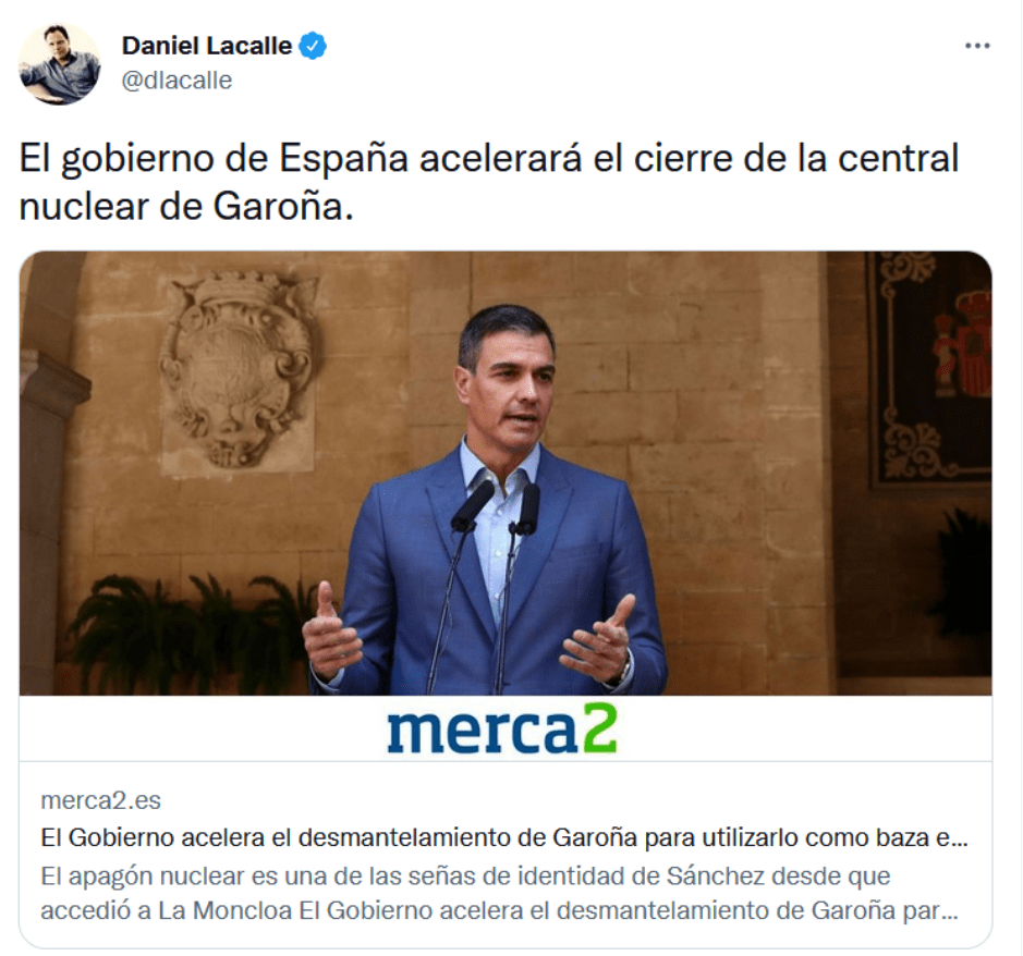Has puesto en tu tuit: “El gobierno de España acelerará el cierre de la central nuclear de Garoña”.